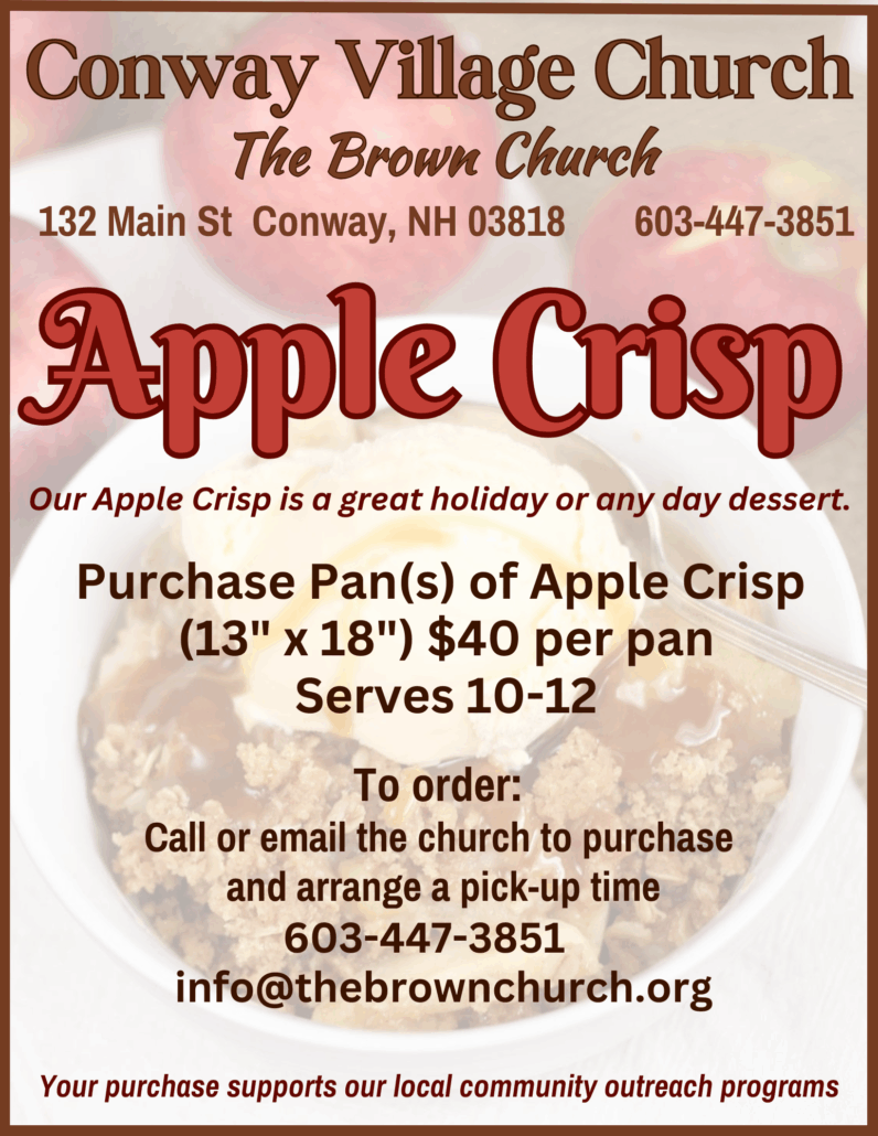 The Food Pantry reopened on January 21st. Please call 603-447-3851 for more information or to make an appointment.