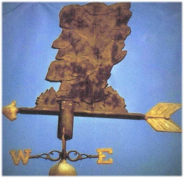 Thank you Brian Wiggin for lending the Conway Book, by Janet Hounsell. The weathervane was gifted to the church in 1970 by Arthur Kenison Jr. in memory of his mother Mrs. Arthur Kenison Sr. It is 19 inches wide, 36 inches tall and weighs 30 lbs. It is considered unique since the mold it was made in was destroyed.